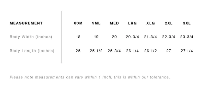 Regular fit Crew neck Mid weight, 5.3 oz, 28-singles 100% combed cotton (heathers 15% viscose) Neck ribbing, side seamed, shoulder to shoulder tape, double needle hems, preshrunk to minimize shrinkage